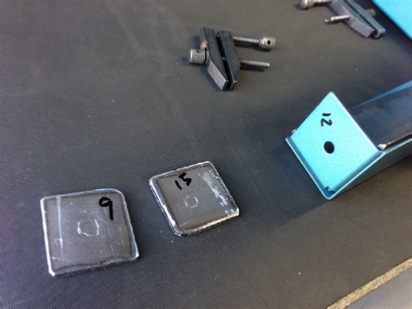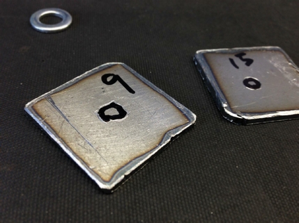 The plates now cut, we need to mark the holes for drilling, 9mm for the top plate bolt, and 15mm for the wheel stud bolt.