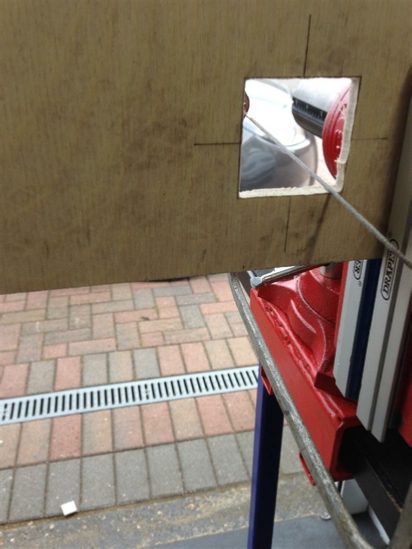 Time to enlarge those foot holes, notice the use of the step drill and my SDS plus drill with the chuck fitted, also the use of multiple clamps.