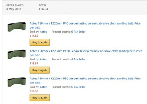I have used Abtec4abrasives and found there products to be good, so I purchased the three belts on the left from them.