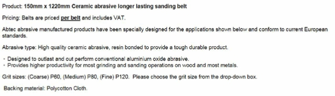 The 150mm x 1220 Ceramic belt on Ebay can be found here: