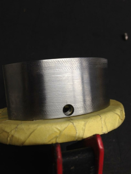 The idea being, drop the new steel ring onto the base, put the grub screw into the base from the inside, give the ring a tap with a hammer from the outside to mark the inside of the ring.