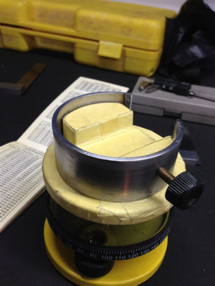 I rolled the complete ring, then decided to cut the ring on one side, because the base had a spirit level built in, and I wanted this to be visible, when the base was in use.