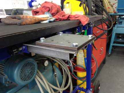 The new ring roller will need another one of those low ‘Quick Release Mounts’, because you will have to turn the handle to move the steel through the rollers, and you don’t want to stand on a box to do it! We also have another problem, the mounting plate that the ring roller is on, is narrow just slightly wider that the box section for the Quick Release Mount in fact.