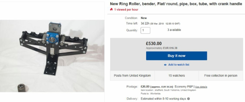 I looked around at ring rollers on Ebay and Amazon however, most of them did not look as though they could cope with the thickness of the steel that I wanted to work with. I then found Cyclops Designs here in the UK, in Sheffield. Better still they made attachments for rolling tubing and round bar.