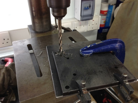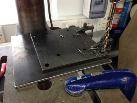 Now for some dodgy drilling. I really don’t like drilling holes freehand, but I simply could not clamp this lot onto the drilling machine table.