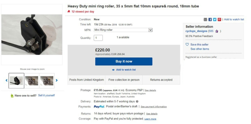 As of today (March 2019) according to the current Ebay ad they are saying that this ring roller is currently not available. They do however seem to have a newer but much larger model. See the picture below.