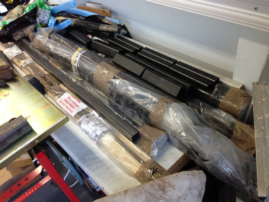 This order was all of the metal for the bench and the quick release mounts for things like vices and bench grinders. Order weight about 130kg.