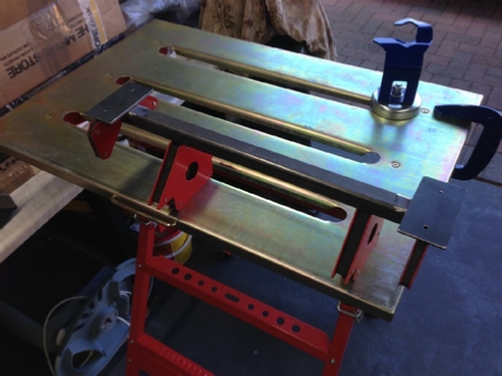 The idea was to add a steel cross member to my drill bench, with a right angle tube to allow me to remove the top of the roller stand and lock it in place use a weldnut and star wheel. So this was the plan.