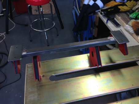 This picture actually shows the front cross member of the bench being supported both from the left and the right. This is box section 60 x 50 x 5mm and is about 1.5Mtr in length.