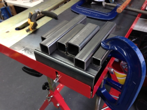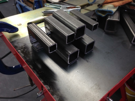 Front top 50x50x5 box section. Plasma cut off the rear section, create a U shape.