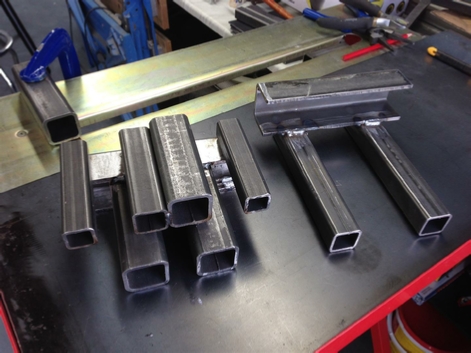 This is the first part of the mount jig being welded. I am trying to align the six pieces of box section up to give me the correct spacing that I needed.