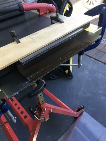 I set up the following, using a 4mm steel plate to try and protect my welding table and that stainless steel splash back on the floor.