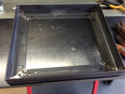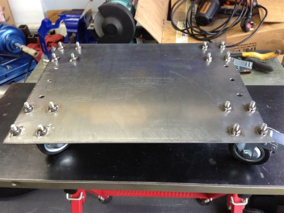 The finished wheel mount frame and new base plate.