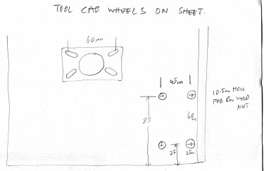 Time to accurately mark out the wheel mounting plate, remember how tight for space those weldnuts are going to be.